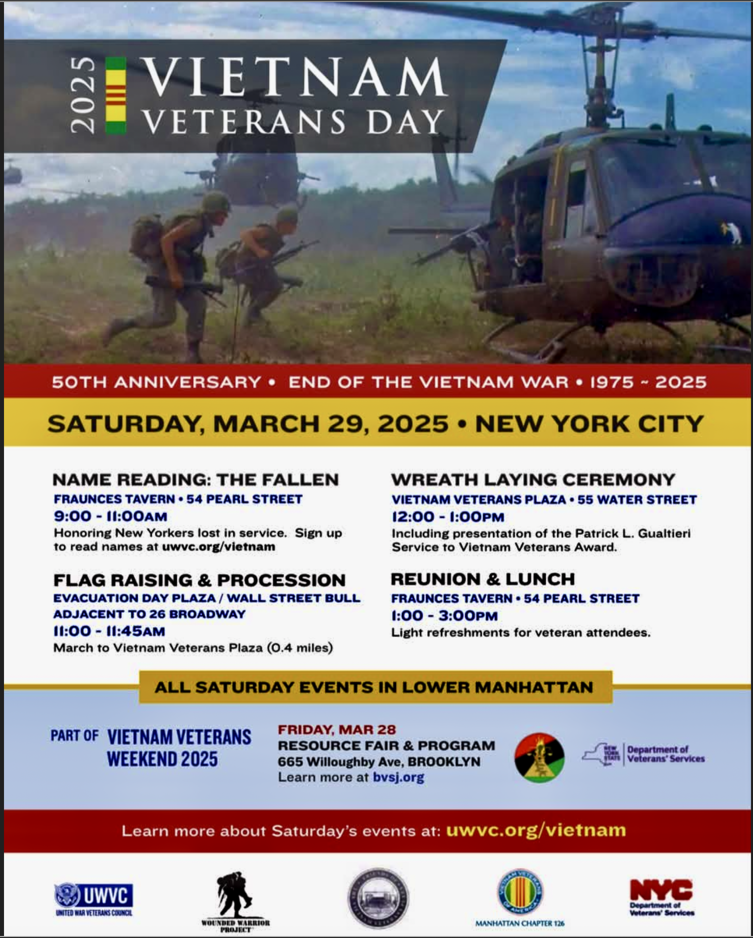 Join us in New York City as we honor the 50th Anniversary of the End of the Vietnam War (1975β2025) with a weekend of remembrance, tribute, and support for our veterans.